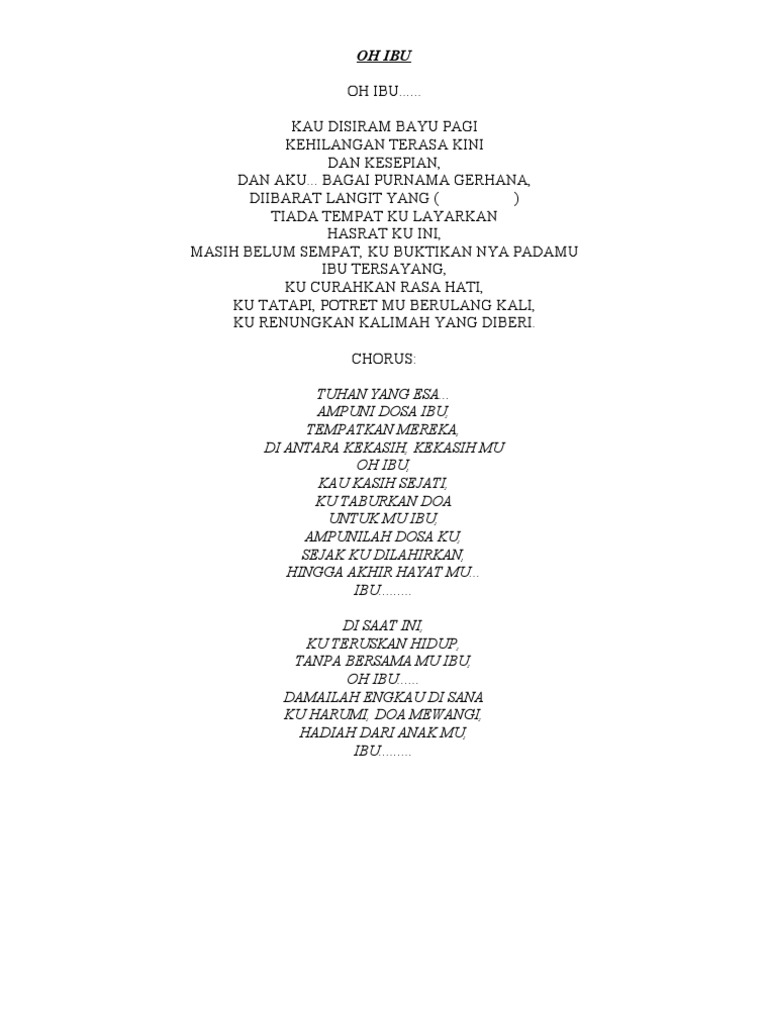 Lirik Lagu Oh Ibuku